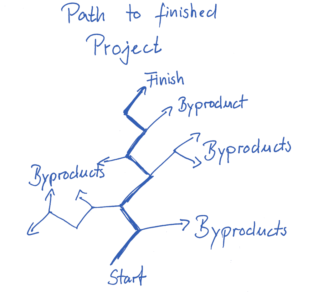 Once we're curious, most of us, far from thinking in a tree-like fashion, find ourselves interested in a subject without identifying the exact questions that we want to answer. Instead, it can be incredibly powerful to identify the specific questions you have in mind. Keeping a scratch pad of those questions, similar to the drawing below, can help keep you focused and motivated.